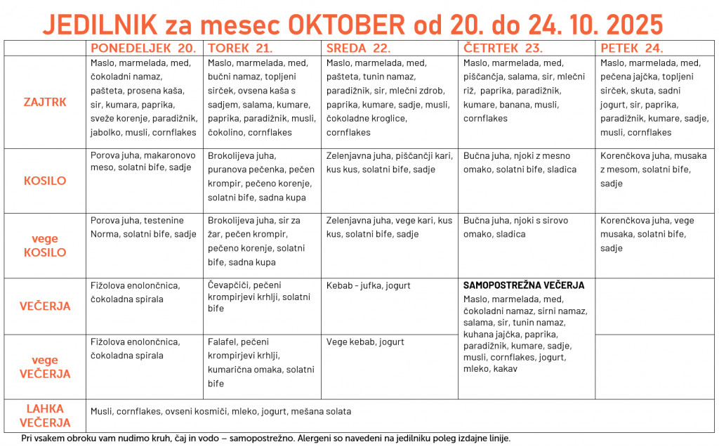 V Dijaškem domu Bežigrad se zavedamo, da je pravilna prehrana nujni pogoj za zdravje naših dijakov. Zato si prizadevamo, da bi bili naši jedilniki čimbolj uravnoteženi, obenem pa tudi čimbolj okusni. Dijakom omogočamo vegetarijanske obroke, lahko večerjo, za športnike pa smo uvedli tudi športne obroke.